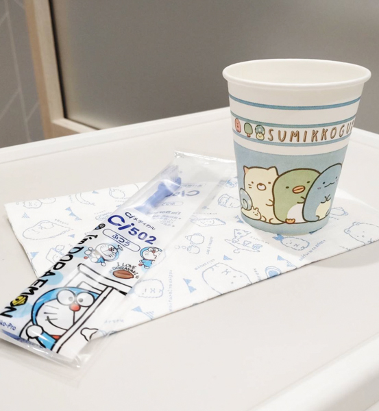 エプロンやコップ、歯ブラシなど、使用する小物には子どもが好きなキャラクター付きのものをご用意しています。